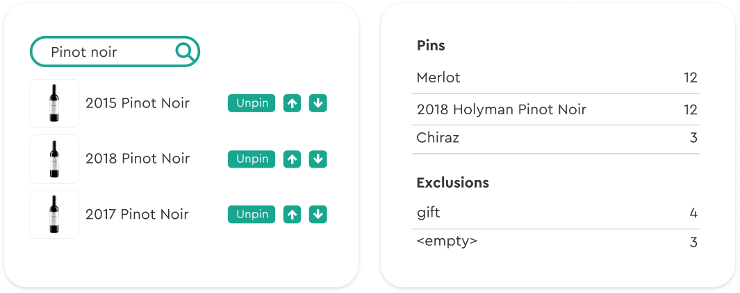 If you need to promote or exclude products for selected search terms - we got you covered. Pin & Exclude provides you with just that. Promoting and hiding products has never been easier.